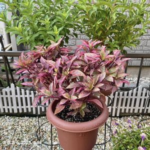 🏷8日は葉っぱの発表会に参加させてください! ①チョイシア テルナータ サンダンス 常緑低木です! ②西洋イワナンテン ③アルテルナンテラ コタキナバル リーフプランツ ④トキワマンサク 色んな花の色が咲く1本の木🌳なんですよ!😁 ⑤アンテルナンテラ パープルプリンス 2025.7.8.📸pic❣