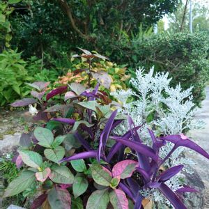 ほったらかし鉢植えが秋らしいカラーになりました 紫御殿とこぼれ種のアルテルナンテラがモリモリ元気そうです♬