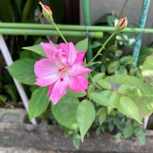 2021.6.17 JR木幡駅に向かういつもの道で。ミニバラ。蕾も2つ