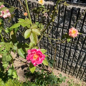 2021.7.21 2回目のワクチン接種(7月18日)後最初のジムに行ってきます😄 私のミニ薔薇スポットのひとつ、木幡駅前。先進むにつれて色や形が変わっていく様はおもしろいです。手前の薔薇は今が盛り、左端の薔薇は咲き終わっていますね。