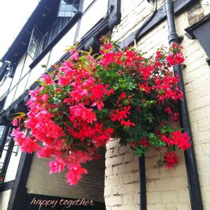 ヒースローとオックスフォードの中間地点にある Wendoverの街並みに吊るされていたハンギングバスケット