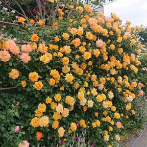 スイート ジュリエット🌹 アプリコットが可愛い香りの薔薇🌹 友だちの庭から枝をもらって来てもう何年になるだろう🎵 可愛くて好き💕