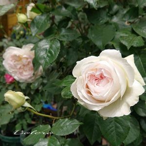 連投⑦ ローズ ポンパドール🌹からのそっぽ向いてる、ローズうらら🌹 奥行き50cm 高さは出窓下の1m😅💦 かなり狭い所で無理やり薔薇🌹 マァ~いいんではないかい😂⁉️
