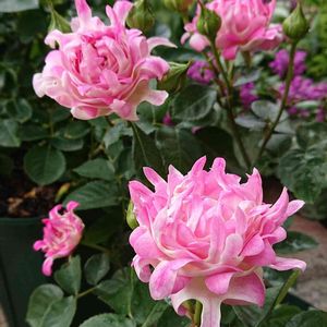 連投④ ジャック カルティエ🌹 初開花❣️ ピンク可愛い~💓 ググったら1.5m😅 でも上向くのね🎵 鉢植えでなるべくコンパクトに育って下さいね😂