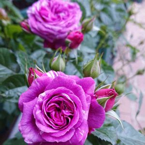 連投② ラプソディ イン ブルー🌹 後ろのツルアイスバーグぎもう少し咲いてくれたら素敵なのにね😂