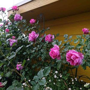 連投⑤ パレード🌹 テラスの屋根の方まで誘引してみました🎵 溢れるように咲いてる~💓 この感じもいいかも~💓