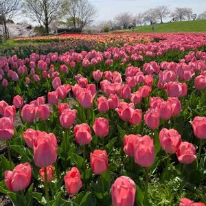 桜🌸とチューリップ🌷 チューリップ祭り 開催中 桜とのコラボも楽しめます まるで四季彩の丘みたいです😊