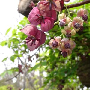 今日のお花 アケビ 上はアケビ 3月に東京薬科大学で📷 下はミツバアケビ 同じく3月に、調布市野草園で📷
