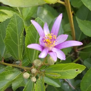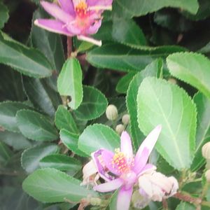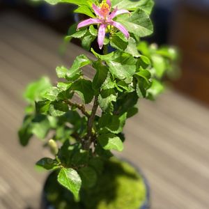 睡蓮木、今年も咲きました🌸 1日花なので、明日には閉じてしまう➰ 昨日から待っていた最初のお花は、ベランダの強風で、咲きかけがポロリ💦 ちゃんと、移動して下さいよ‼️(反省🥲) テキトーな剪定をしてきましたが、案外強いことがわかったので、盆栽風に仕立てようかと思案中です❣️
