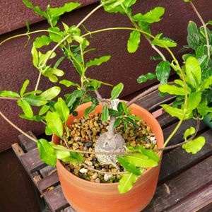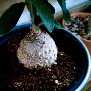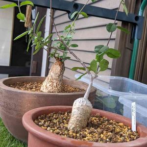 フォッケアの植え替えをしました。 鉢を巻き込む根っこに力強さを感じた今日この頃です。鉢は壊して植え替えです🥺