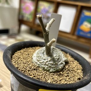 火星人、植え替え剪定しました。 根も枝もバッサリ切って塊根部分を多めに地上に出しました。 懸崖仕立てにしていましたが、枝葉がモサモサ茂って氣志團綾小路翔の髪型のようになってました。邪魔だったので今度は上に束ねようかな。 せっかく高さが出たのでやはり前に垂らすかな🤔