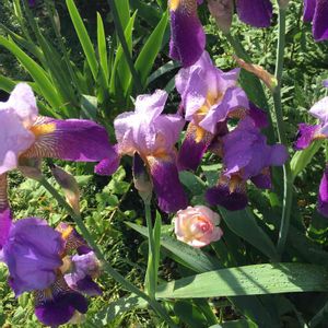 我が家のジャーマンアイリスが満開です💖 見て回っていたら、薔薇でその中で咲いていました🌹 可愛い😍