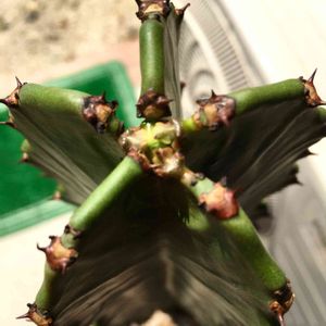 おはようございます☀️ 今朝の柱ユーフォルビア💕 葉っぱが出て来ました🌿 生産者さんの話しで聞いていましたが、こんなふうに出て来るんだね❣️ けっこうながい間ついているという話しなので、いつまであるのか楽しみです😆💖