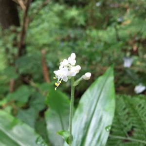 『藪茗荷🤍🍃ヤブミョウガ』 花から実への変化 可愛い白い花が 今の時期咲いてます🤍🍃 秋には紺色の 実がなりますよ🔵🍃 ツユクサ科 ヤブミョウガ属