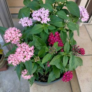 【1枚目】7月6日購入したペンタスをやっとこ玄関前デビューさせました。 ペンタスで大好きな3色が一度に揃ったので10号鉢にすべて詰め込み窮屈になりましたが、形良く育っているのでこのまま続行します。秋まで可愛く咲いてください🥰 ペンタスは一度種まきしたことがあります。気温がじゅうぶん上がった5月頃に蒔けば発芽しやすいし、その後も特に問題なく育ちます。ただ咲くのが8月中旬以降になるので、秋に楽しむつもりで育てることになります。 【2枚目】鉢増ししたカンナも玄関デビュー。カンナも秋まで咲いてくれるので楽しみです☺️ 【3枚目】よく見たら花がらに種が出来ていました。このブツブツした緑色のものが種で、このまま放置すると茶色くなり種が採れますが、栄養を持って行かれるのですぐカット。採種しなくても年々球根が増えるのでね。 カンナは朝6時半頃に水やりしても昼には表面がカラカラに乾いています。もちろん夕方にもジャブジャブあげますが、さすがに乾きすぎるので堆肥マルチングしてあげた方がいいのかも🤔 【4枚目】トルコキキョウは暑さの中がんばって咲いてくれてはいるのですが……… 【5枚目】ひどいものではこんな感じで枯れたようになっちゃって😣💦 梅雨明けして猛暑日が続くようになってからなので、暑さのせいかな。こうなるとろくな花が咲かないと思うので、ぼちぼち切り戻そうかなと思います。 15年くらい前に種まきした時は二番花まで綺麗に咲いてくれたけど、こう暑いとトルコキキョウは厳しいのかな?🤔