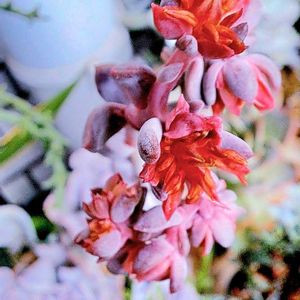 おはようございます😃🌡️ずうっ~と37℃🌤 キュービック・フロスト(エケベリア)、こんなのが3房咲きました🥀🥀🥀 よい一日を🐬.。o○🌈🌏