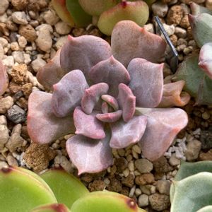 子が4つも出ていたので 子だけを別の鉢に植え替えして 整えた時に取った葉も一緒に鉢に。 こいつは子が増えやすいタイプなのかな? これからも親はロゼットを保つようにしてあげよう。 大きさも保った方が良いかな…可愛くなくなりそう^^; それにしてもグレープとミントのグラデーションがキレイ♪ 今日は冷たい雨(>_<) 急に寒くなって頭痛い(>_<)