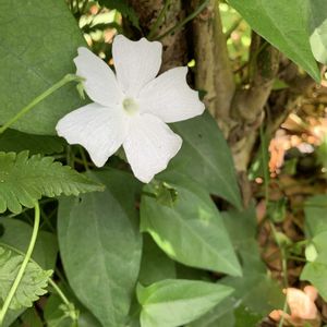 灼熱地獄の中 (沖縄の直射日光は熱い🥵し痛い‼️)涼しげに咲いている蔓性の白い花。 名前を教えて下さい🙇♀️