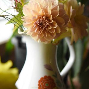 実家の玄関 妹に春に球根をプレゼントしたもの 切り花にして持ってきてくれました この花瓶も花の色合いに似合ってる