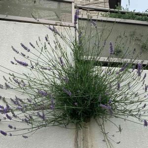 こんばんは🌙😉 定期的に花壇の植え替え、庭木の手入れにお伺いさせて頂いているお宅のラベンダー🪻(たぶん、グロッソ❓だったとおもいます😔) ちょっと高台になった花壇に植えたラベンダー🪻。 水抜き?の切れ込みが入った部分から外側に向けて日光を求め放射状に大爆発‼️ 🪻🪻🪻😳😱😳 見事なので、今回はそのままに…🫣 高い脚立🪜でないと届かない…😰