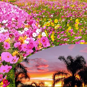 (*ˊᵕˋ*)ノ" こんにちは☀ ✽今日のお花✽ 🌸コスモス🌸 昨年🚗💨移動中に であった( ⁰͈∀⁰) 田んぼの中の 🌻コスモス&ヒマワリ畑🌻 とっても きれいでした🫧👏🏻✨ 我が家の 2階のベランダからの 夕日🌇📷ω•,,)カシャ!! 一緒にコラボ 𓂃𓈒🌸*。゚𓂃𓈒🌇*。゚𓂃𓈒🌻*。゚