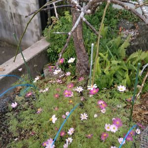 ①今日のお花 コスモス💕 我が家の庭 西と南側から木洩れ日が差します🤗 ②小さい隙間庭ですがコスモスの種を頂いたのが9月🤔 遅くなって植えると小さく育つ様ですが🧐 植えてみました💓 ③芽が出たけどバッタが食べに来るので防虫ネットを張りました😅 ④ささやかですがお花が咲いて来ました💓💓💓 ⑤近くに有る公園のコスモス❣️ 圧巻です🌼🌼🌼🌼🌼🌼