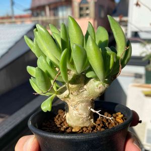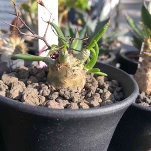 1つ前にワリチーを投稿したから同じチレコドン属でいつも隣で管理している万物想も。 この子はだいぶ葉が出て、完全に目覚めている。 冬型塊根はイマイチ調子が掴みづらくて苦手意識あり。 いつ調子を崩すかと心配ばかり。