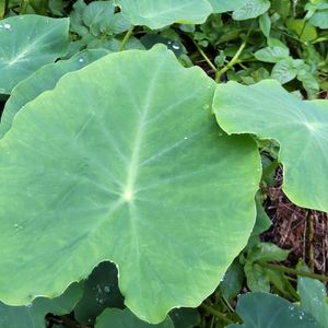 例の、畑の隅にある草や落ち葉の捨て場所に、今年もまた里芋が育っていました🌱🌱😅 去年は食べたら普通においしかったです😄 奥は同じく生えて来たじゃがいもです🌱
