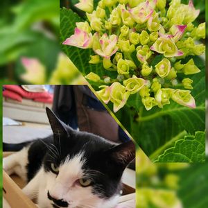 🌿紫陽花 色づきはじめました~❤ 🌿柏葉紫陽花 今年は花目を持つを忘れた🤔様です…😅 🏷️みちのすけさんのニャンニャン祭りに参加です😸 😺テン🍒の箱に収まっています~😻