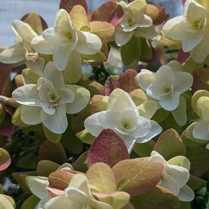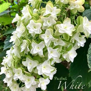 カシワバアジサイ・ハーモニーが咲いていました。 ボリューム感いっぱいのカシワバアジサイ(柏葉紫陽花)です💕🎶 こんもりと個々の装飾花が八重咲きしています🤍🤍🤍😃