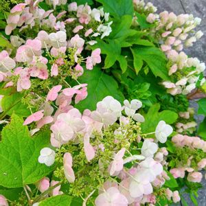 柏葉アジサイ 🌿🌸💮🌿🌸💮🌿🌸💮🌿🌸💮🌿🌸 花期の長い 柏葉アジサイ、がくがピンクになるとソロソロ終わりなのですがまだ可愛いです😃🌸🌿