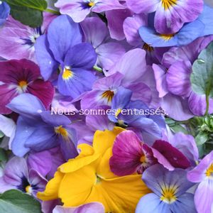555picは、my 花手水にしました🌼 雪解けしてから花壇に。 寒さに負けず素晴らしい⤴️ 真ん中は、パンジーゆみの2色🟡❤️ さくらちゃん可愛い🌸