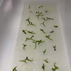 ドラゴンフルーツの種がたくさんあるので面白がって食べながら湿らせたスポンジの上に乗せて1時間後 なんか白いものが!? 根っこで始めてる! 脅威の発芽率に驚き‼️