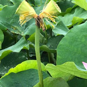 7/24撮影 7/18に投稿した双子のハスが昨日ここまで膨らみました。 今日行ったら散った後でした! そのハスが今日の朝日新聞の地方版に出ていました。 とても良いことの兆しだと言われているようです。 ケンタさんに教えていただきあの日から毎日観に行っていました。