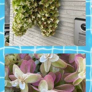 花の終わりに!をもう一枚 カシワバアジサイの大きな花房が重く 下を向いたまま起き上がれないので カット✂️して玄関に🚪 ちょこっと下げました 色も綺麗に秋色になってきたので こんな風に何気なく飾るのも 楽しいですね♪♪♪💟