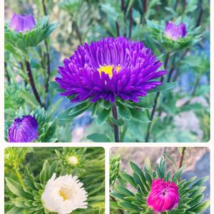 アスターෆ̈ෆ̈ෆ̈ タイミング良く開花始めました(⑅︎´∀︎`)σ お盆花にちょうど間に合いますネ👍 🌿🩷🤍💜🌿
