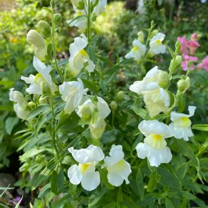 金魚草🤍🍃 去年種まきした子が 庭で越冬しました 株も太って 花がたくさん咲きました♡ 白い花弁の中にうっすら黄色が 爽やかで可愛いです🤍💛🤍🍃