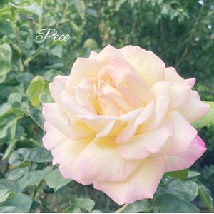 おはようございます♡ 雨の1日になりそうです☔️ バラ ピース✌️ 大輪が咲いています クリーム色にピンクの差し色が入った花びら ふんわり可愛いですね〜♡♡♡