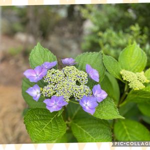 ガクアジサイ💠🍃 小雨の中 お庭をパトロール ガクアジサイの真ん中のつぶつぶ 蕾が開いてෆ̈ෆ̈ෆ̈ お花がお顔を見せてくれました 宝石みたい💎可愛いです♡
