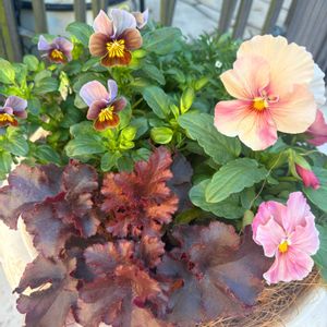 日陰でも咲いてくれる寄せ植え💞 1️⃣2️⃣3️⃣⭐️見元コレクションのパンジー色変🤍🩷 ⭐️フロステッドチョコレート🍫 チョコレート色来た〜🤎 ⭐️ヒューケラ ヘブン ⭐️アリッサム なかなか咲いてくれないかな💦 4️⃣5️⃣昨日の日付ですが😅 上は10/7そして色変して11/27 ⭐️カクテルマム クリスタル💚 ⭐️ガーデンマムジジ ダークピンク🩷 クリスタルさん💚だったはずが、🩷🤍💚にそして❣️真っ白🤍のマム〜〜🤣どおした⁉️ お花の色変は面白い〜💞✨✨ 良い天気だけど仕事〜❣️ 今日も1日皆様にとって素敵な日になります様に🤗💞✨ 🏷️一般ジーの会♪