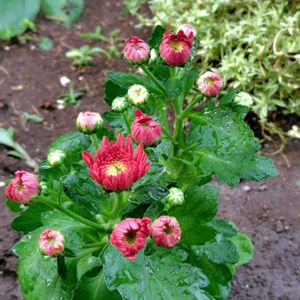 ガーデンマムジジ、コーラル色の小菊が咲き始めました🧡