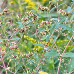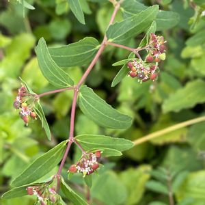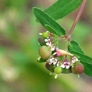 オオニシキソウ トウダイグサ科トウダイグサ属 一年草 アメリカ及び南米原産 花期6〜10月 くきには淡紅色を帯び、直立または斜上して、高さ20〜40cmになる。 葉は対生し、長さ1.5〜3.5cmの長楕円形である。 花序は単生あるいは群生である。 杯状花序で、花の周りを平らな白あるいは赤の付属体が伴う。 並んだ付属体の中心には、1つの雌花を囲んで複数の雄花がある。 雌花は果実(幅約2mmの鞘)へと成長する。 🏷️帰化植物ファンクラブ に参加させていただきます。