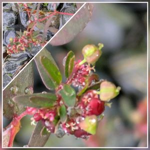 1️⃣ 今日は雨がちで寒い日で 今季初めて 薄手のコートにマフラーをして 夫の運転で出かけて来ました 夕方帰宅して車の中から 駐車場の石組みの上の ピンクっぽく色づいた糊空木を写すと 油絵の様な雰囲気になりました〜🖼️ 2️⃣3️⃣ 車から下りて西洋鎌柄の赤くなった実を… アップでも写したら おりんごの様に見えてビックリ!🍎 🏷️グリーンアクセサリー♪…に🎶 4️⃣ 駐車場の沢山の大錦草が 雨粒でキラキラ…✨✨ 🏷️チーム地味草…に参加します 5️⃣ お昼前デッキの瑠璃茉莉は 降り始めた雨で可哀想に こんな姿に… 🏷️✨水滴は魔法使い✨…に♡