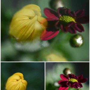 昨日の雨は何処に行った! 玄関先の小菊と 朝だけ陽が当たる場所の 黃色の菊 多重露光にしました。