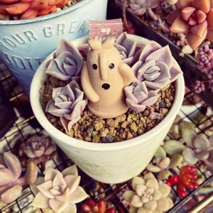 今朝、ある方のインスタ見てたら ラブリーローズの寄せ植えにハニワが埋まってて いいなあって、 真似っ子?…🤔💭 うちのは? 😂😂😂😂 群生とは言わない寄せ植えにも程遠い😂 悔しいからこの前地植えからチョンパした多肉並べて見たけど… イマイチやなぁ ハニワの数少ない取り巻きにしかならなかった🤣