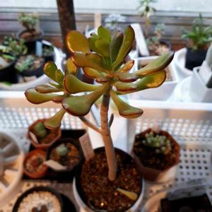 前回ぼやけてたのでリベンジの、謎カランコエのアルボレスケンスさん つるりとした茎の先端に細い葉が展開していてとても綺麗 ちょっとアオエニウムっぽいなぁ 無事に冬を越せたら挿し木してみようかな?