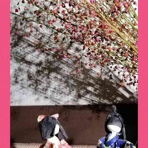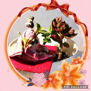 ✿*:・゚٩(*´︶`*)۶おはよ〜♬✿*:・゚ カランコエ開花♫•*¨待ってます*•.¸¸♪ .。.:和紙お雛様…座高5.5Cm.。.:* 数年前手作り♫•*¨自己流作品*•.¸¸♪