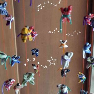 ✿*:・゚٩(*´︶`*)۶おはよ〜♬✿*:・゚ さるぼぼ🐵の吊るし飾りです お顔は🐵フウセンカズラの種🧡 今日も健やかに♫•*¨*•.¸¸♪