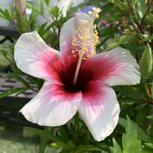 ハイビスカスのお二人さん。 半日陰で順調です🎶 フィジアンホワイトは今年始まり1番の花数でした🌺🌺🌺🌺🌺🌺