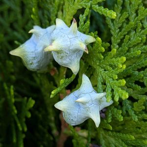 コノテガシワ(児の手柏、児手柏) ① このくらいの大きさで見るのが金平糖らしくていいかも。✨✨ ②③ 大きくすると、角が生えた何か生き物のように見える ④ 以前と比べると、実が減ってきてるように思える ラベンダー🪻 ⑤いい香り〜〜💕💖 ほっとする香り✨🪻🪻🪻 ①②③④ 2024.7.1撮影 ⑤ 2024.6.30撮影